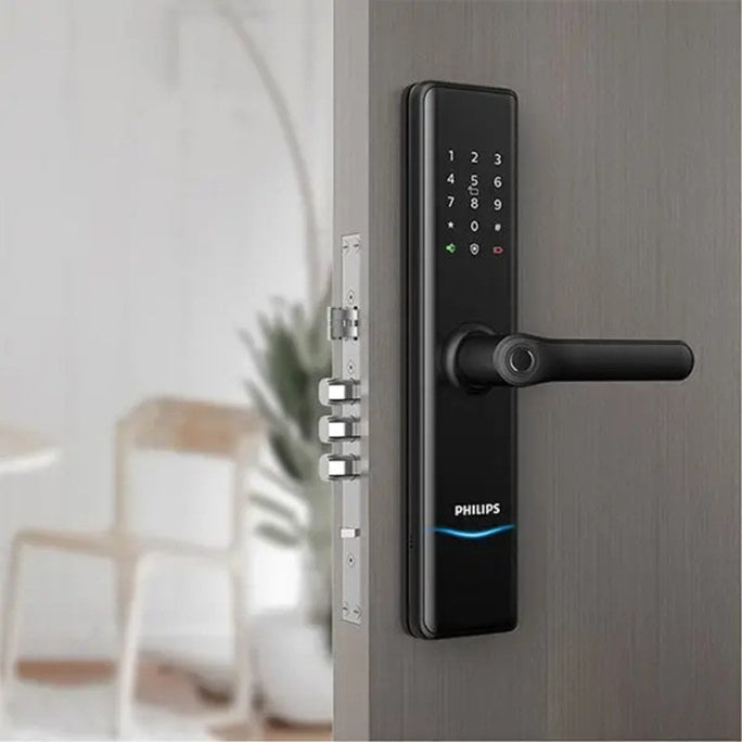 The Philips EasyKey DDL7300 smart lock comes equipped with a number of features and benefits that make it a top choice for homeowners Keyless Entry: With the Philips EasyKey DDL7300 smart lock, you can say goodbye to keys forever. The lock uses advanced technology to allow you to enter your home using your smartphone or a key card, eliminating the need for traditional keys. Remote Access: The smart lock comes equipped with a mobile app that allows you to remotely control the lock from anywhere. This means that you can lock and unlock your door even when you’re not at home.Use a combination of any two factors (fingerprint, password and card) as the unlocking solution to ensure doubled security for your home.Unlock in one go Intuitive fingerprinting-The fingerprint sensor is integrated in the handle for swift unlocking Voice Control: The Philips EasyKey DDL7300 smart lock is compatible with Amazon Alexa and Google Assistant, which means that you can control the lock with your voice. Easy Installation: The smart lock is designed to be easy to install, and it can be fitted to most standard doors without the need for any additional modifications. Automatic Locking: The Philips EasyKey DDL7300 smart lock comes with an automatic locking feature that ensures that your door is always locked, even if you forget to lock it manually. Multiple User Access: The mobile app allows you to create multiple user profiles, so you can give access to family members, friends, or service providers without having to share your access credentials. Activity Log: The smart lock keeps a detailed activity log of all the actions performed, including who entered or left the house and when. This can be useful for keeping track of who?s coming and going, and for identifying any suspicious activity. Battery Backup: The Philips EasyKey DDL7300 smart lock comes with a battery backup system that ensures the lock continues to function even during power outages. The Philips EasyKey DDL7300 smart lock comes equipped with a number of features and benefits that make it a top choice for homeowners: Keyless Entry: With the Philips EasyKey DDL7300 smart lock, you can say goodbye to keys forever. The lock uses advanced technology to allow you to enter your home using your smartphone or a key card, eliminating the need for traditional keys. Remote Access: The smart lock comes equipped with a mobile app that allows you to remotely control the lock from anywhere. This means that you can lock and unlock your door even when you?re not at home. Voice Control: The Philips EasyKey DDL7300 smart lock is compatible with Amazon Alexa and Google Assistant, which means that you can control the lock with your voice. Easy Installation: The smart lock is designed to be easy to install, and it can be fitted to most standard doors without the need for any additional modifications. Automatic Locking: The Philips EasyKey DDL7300 smart lock comes with an automatic locking feature that ensures that your door is always locked, even if you forget to lock it manually. Multiple User Access: The mobile app allows you to create multiple user profiles, so you can give access to family members, friends, or service providers without having to share your access credentials. Activity Log: The smart lock keeps a detailed activity log of all the actions performed, including who entered or left the house and when. This can be useful for keeping track of who?s coming and going, and for identifying any suspicious activity. Battery Backup: The Philips EasyKey DDL7300 smart lock comes with a battery backup system that ensures the lock continues to function even during power outages.