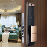 Samsung SHP-P72 Smart Door Lock with Fingerprint can also be unlocked by PIN Code, RFID Card plus back up mechanical key.Push-Pull Design handle: open or close with just one action Fingerprint Access: Fast and accurate fingerprint sensor. Random Security Code: Before entering your password you will be prompted to tap two randomly chosen digits, making it impossible to guess which numbers you have entered by looking for smudges. Voice Guide: Spoken feedback to guide users for setup and ease of use. One-touch Anti-theft set-up: Set up the intruder prevention feature with a single touch to burglar-proof your home when your family is away. When this feature is activated, an alarm is set off when the lock is operated from the inside; a sign of a burglar attempting to make an escape. Suspicious movement alert: When the equipped IR sensor detects any suspicious movements for prolonged periods of time, the door lock sounds a warning siren to ward off unwanted guests. Intrusion Alarm: When the equipped IR sensor detects any suspicious movements for prolonged periods of time, the door lock sounds a warning siren to ward off unwanted guests. Attempted forced entry or tampering to bypass the lock will set off the alarm immediately. High-Temperature Alarm: When abnormal high-temperature is detected by the built-in sensor, the alarm is triggered, and the door lock flashes an alert. The door lock will be also automatically unlocked to allow fast escape. * High-temperature detection function is operational at about 70 ?C ? 10 ?C; this can vary depending on the installation environment. Emergency Power Supply: If batteries are not replaced on time, they will be completely discharged and the lock will not operate. In this case, to open the door, connect a Micro USB 5-Pin cable from a smartphone portable charger to the Micro USB power input on the bottom of the outer body, and then authenticate the fingerprint or enter the password. Silent Mode: If you have children or often enter/exit your home late at night, you can adjust the volume or mute the key tone or the door opening melody. Low Battery Alarm: If the batteries are running low, The door lock informs you through a specific melody or keypad LED. You can easily replace the batteries without having to check the battery life.