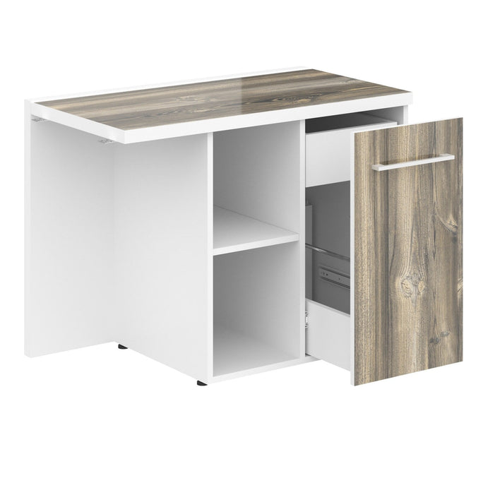 EXECUTIVE RECTANGULAR SHAPE SIDE DESK MADE IN 36MM MFC TOP E1 LAMINATE CHIPBOARD, WITH OPEN SHELFS AND DRAWER