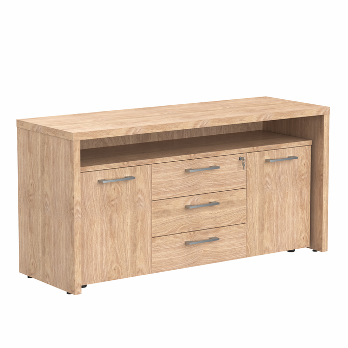 HIGH EXECUTIVE RECTANGULAR SHAPE CREDENZA, MADE IN E1 LAMINATE CHIPBOARD, WITH FIVE DRAWERS AND GLOSSY ACRYLIC 3D 2MM EDGES