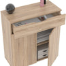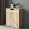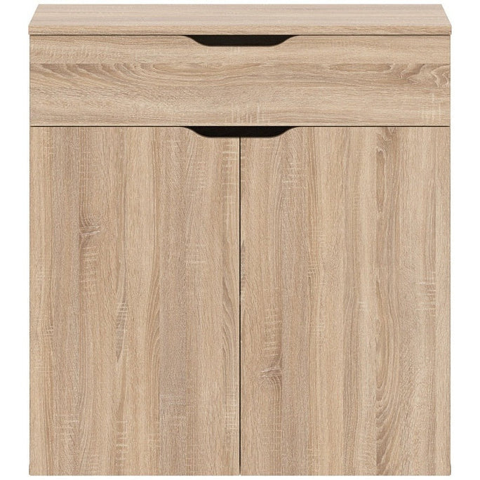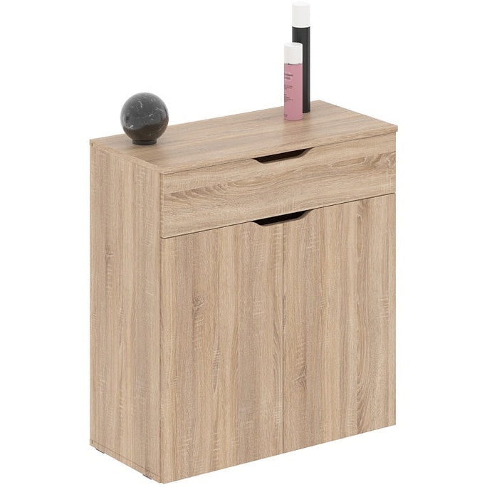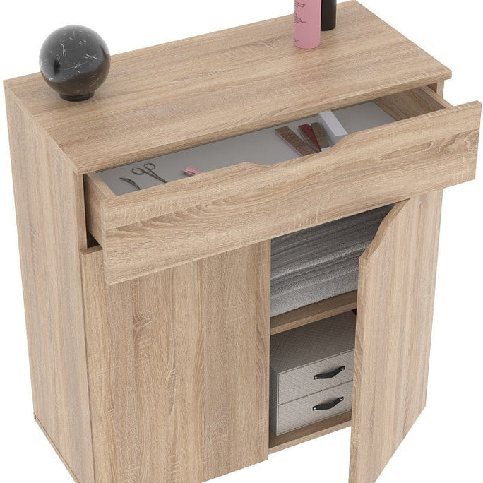 RECTANGULAR SHAPE CABINET WITH DRAWER AND SWING DOOR MADE IN E1 LAMINATE CHIPBOARD.