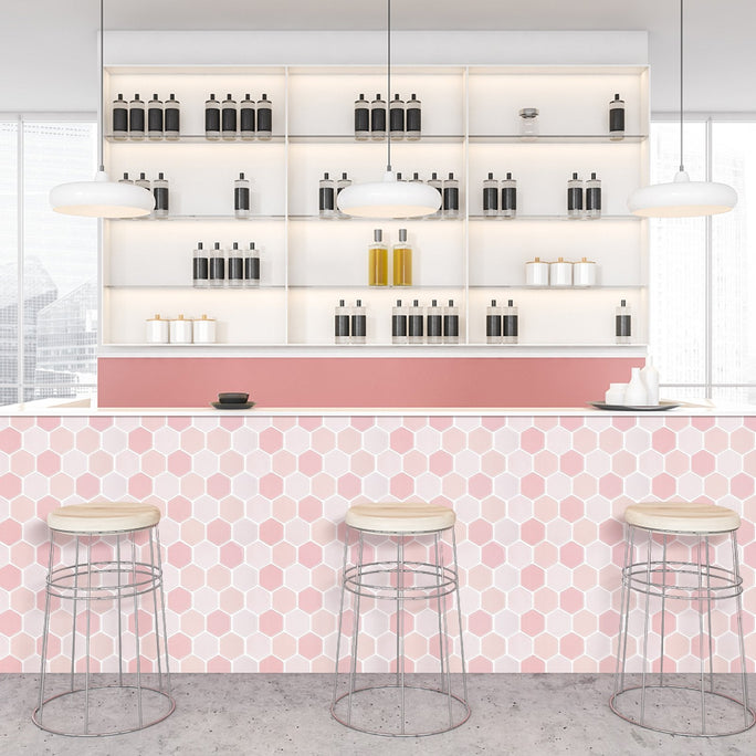 Step 3. Overlap the tiles and grout lines, peel off the backing, and stick them side by side for a seamless appearance.