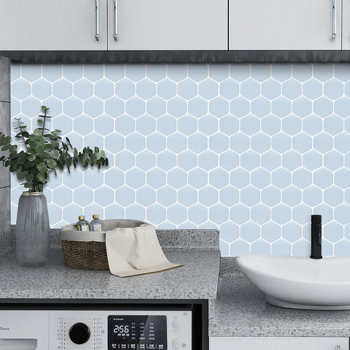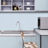 Step 3. Overlap the tiles and grout lines, peel off the backing, and stick them side by side for a seamless appearance.