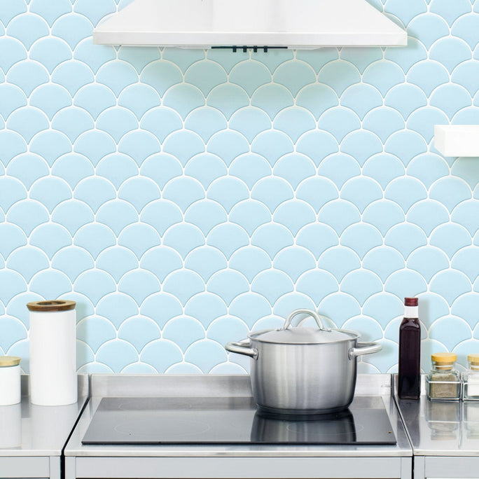 Step 3. Overlap the tiles and grout lines, peel off the backing, and stick them side by side for a seamless appearance.