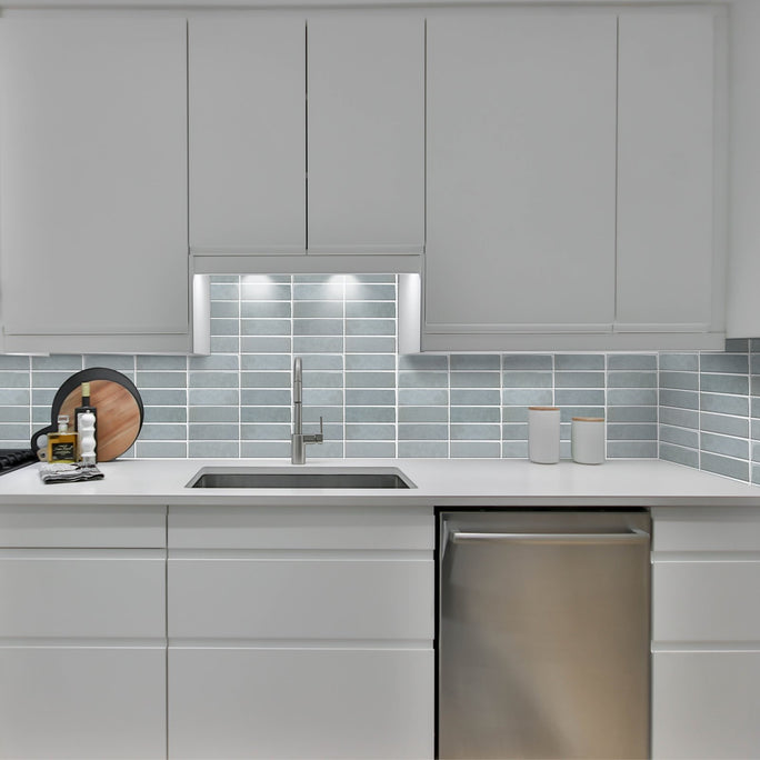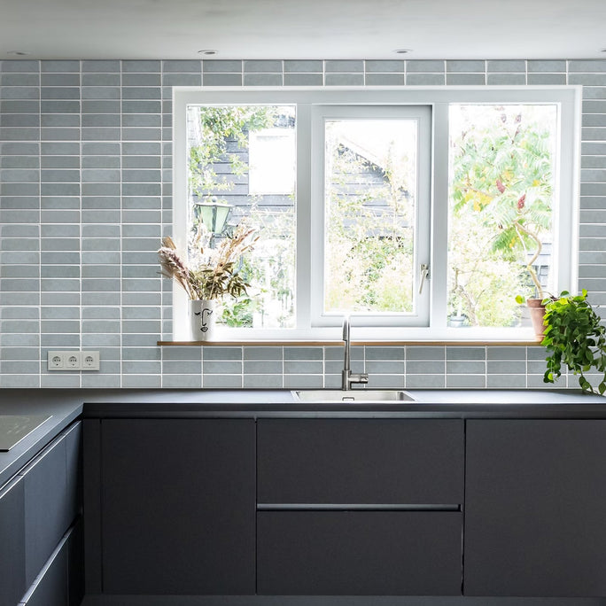 Step 3. Overlap the tiles and grout lines, peel off the backing, and stick them side by side for a seamless appearance.