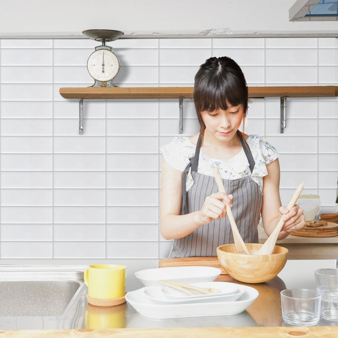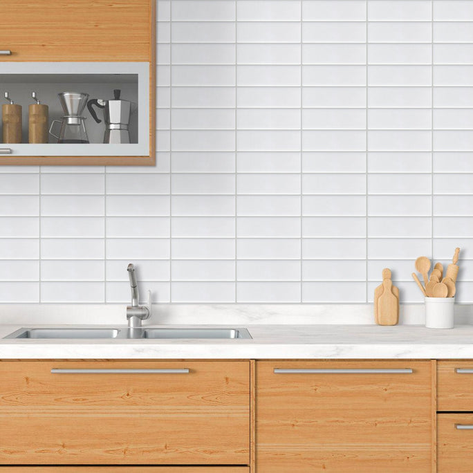Step 3. Overlap the tiles and grout lines, peel off the backing, and stick them side by side for a seamless appearance.