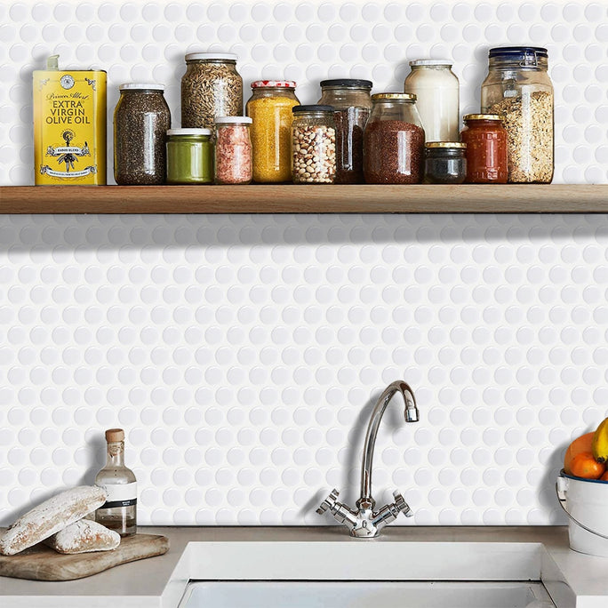 Step 3. Overlap the tiles and grout lines, peel off the backing, and stick them side by side for a seamless appearance.