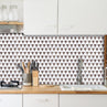 Step 3. Overlap the tiles and grout lines, peel off the backing, and stick them side by side for a seamless appearance.