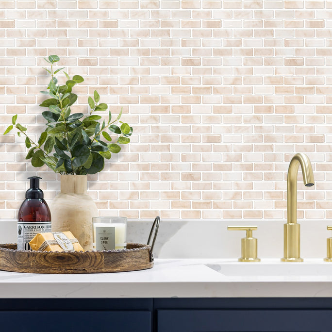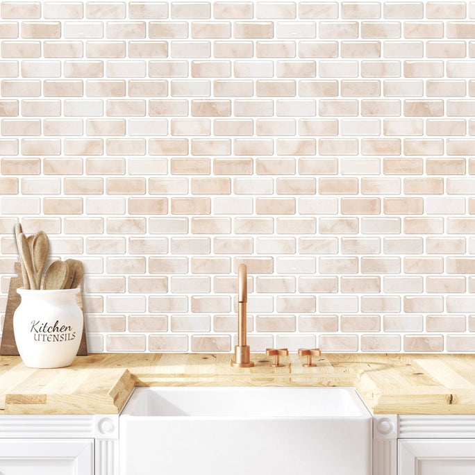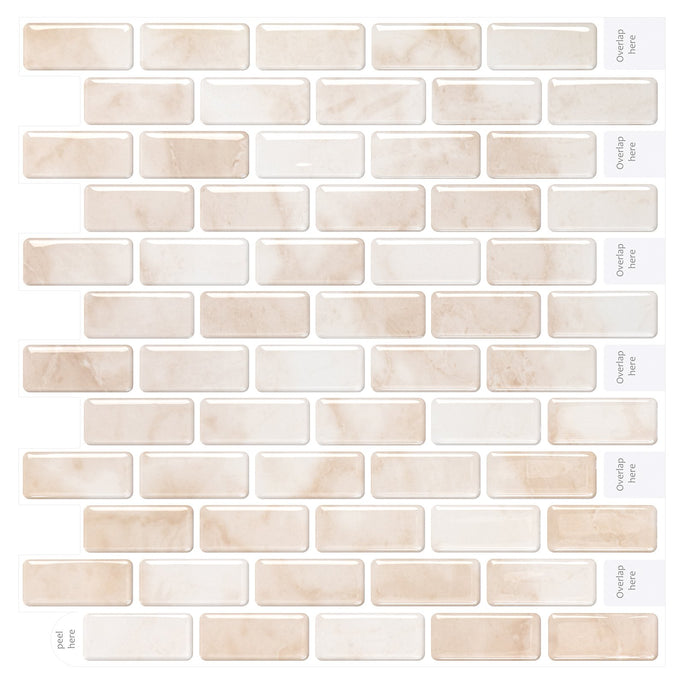 Step 3. Overlap the tiles and grout lines, peel off the backing, and stick them side by side for a seamless appearance.
