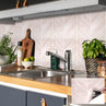 - Step 3. Overlap the tiles and grout lines, peel off the backing, and stick them side by side for a seamless appearance.
