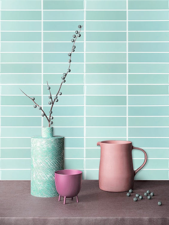 Step 3. Overlap the tiles and grout lines, peel off the backing, and stick them side by side for a seamless appearance.