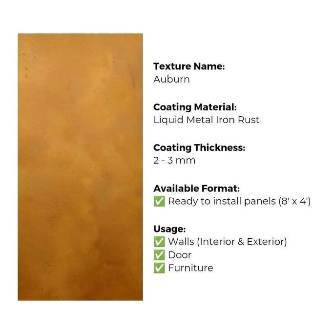 Break free from stereotypical office designs and achieve a warm rustic look at ease with our liquid metal rust finishes.