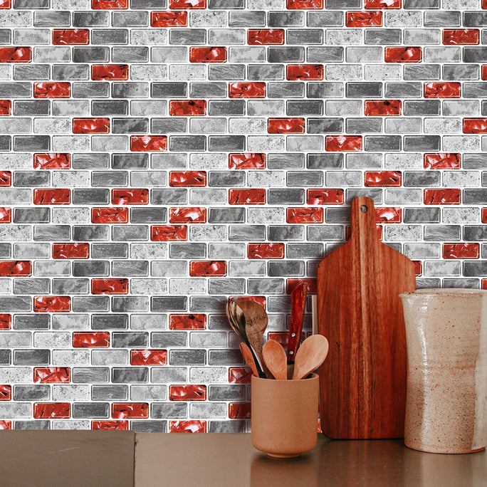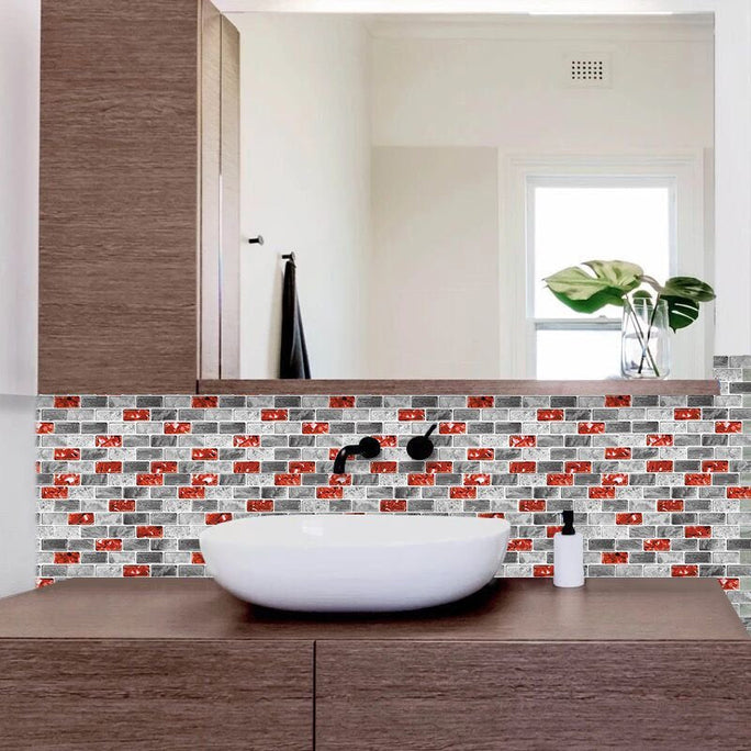 Step 3. Overlap the tiles and grout lines, peel off the backing, and stick them side by side for a seamless appearance.