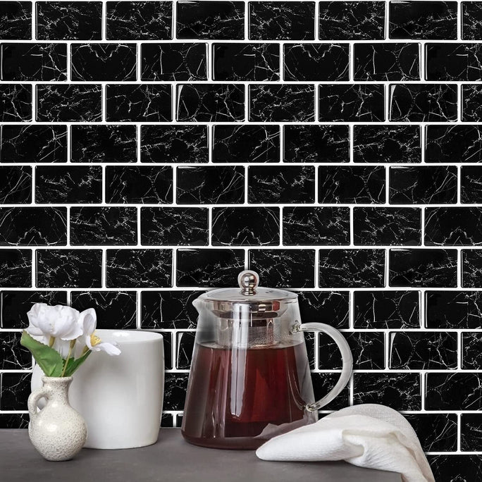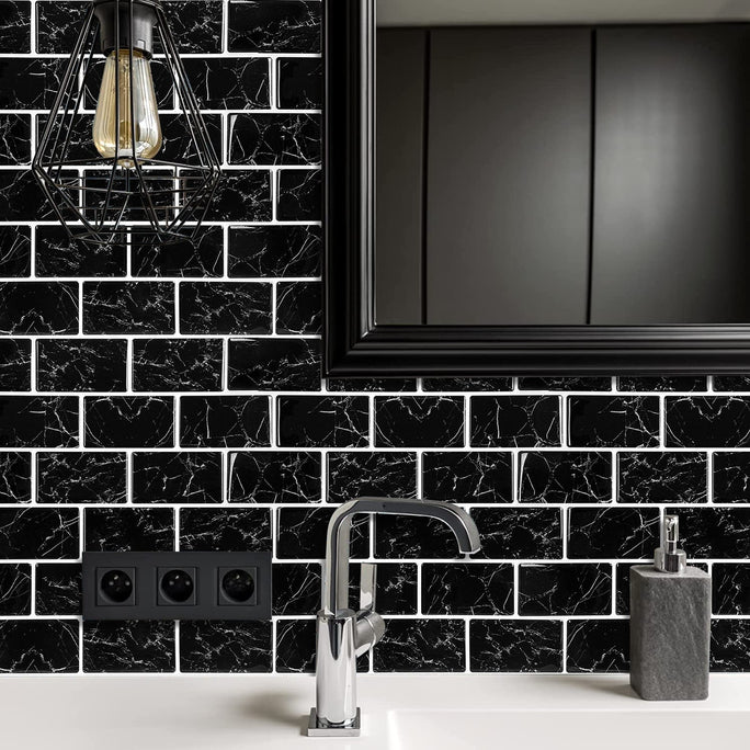 Step 3. Overlap the tiles and grout lines, peel off the backing, and stick them side by side for a seamless appearance.