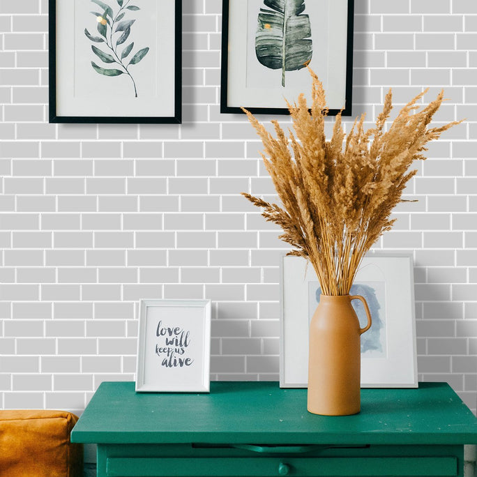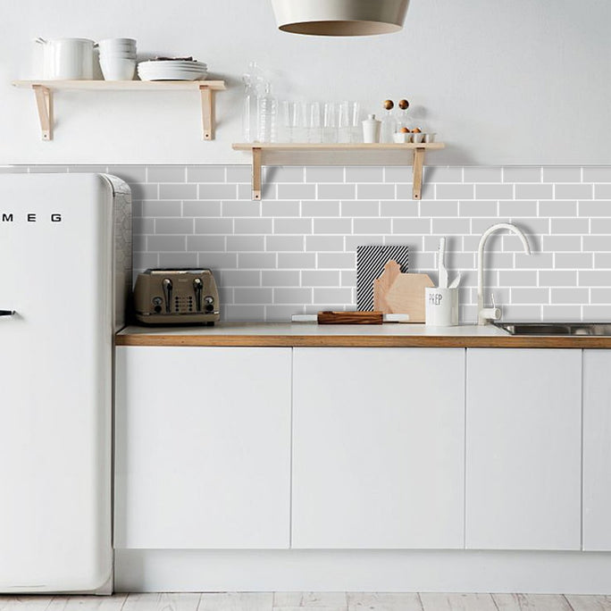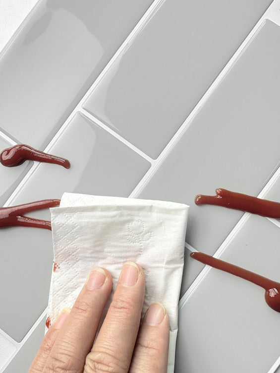 Step 3. Overlap the tiles and grout lines, peel off the backing, and stick them side by side for a seamless appearance.
