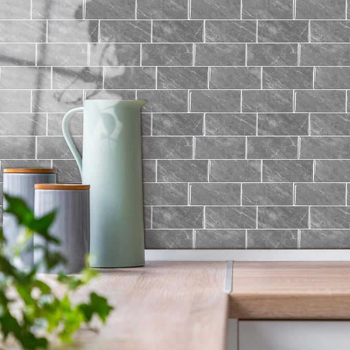Step 3. Overlap the tiles and grout lines, peel off the backing, and stick them side by side for a seamless appearance.