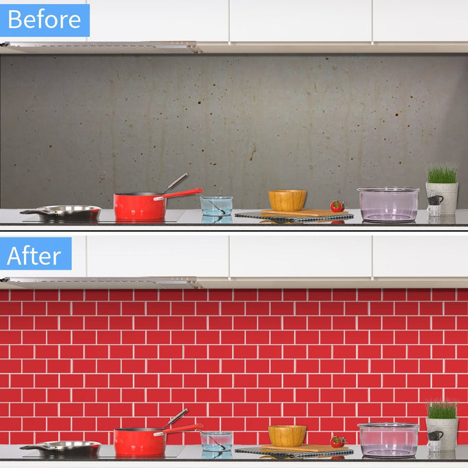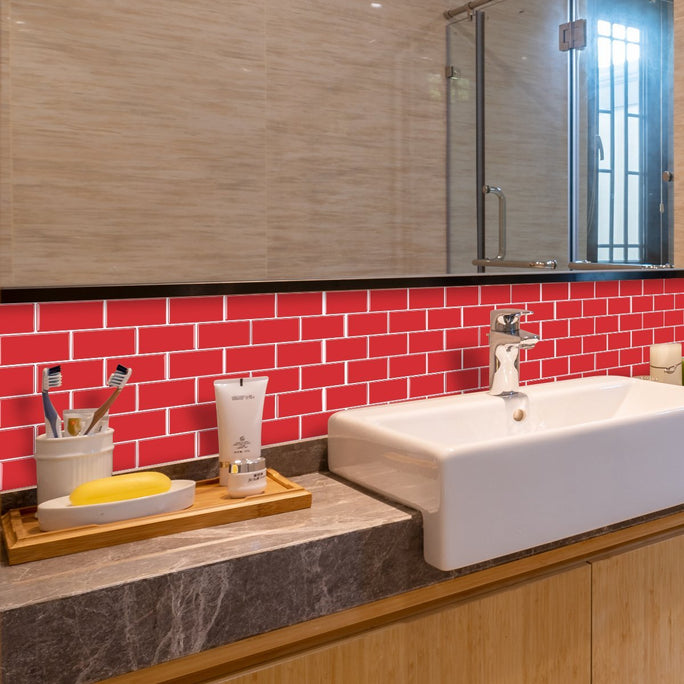 Step 3. Overlap the tiles and grout lines, peel off the backing, and stick them side by side for a seamless appearance.