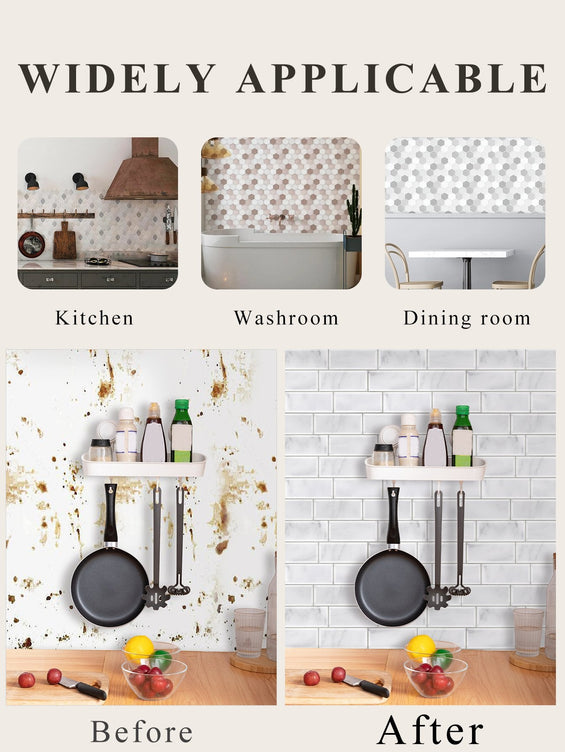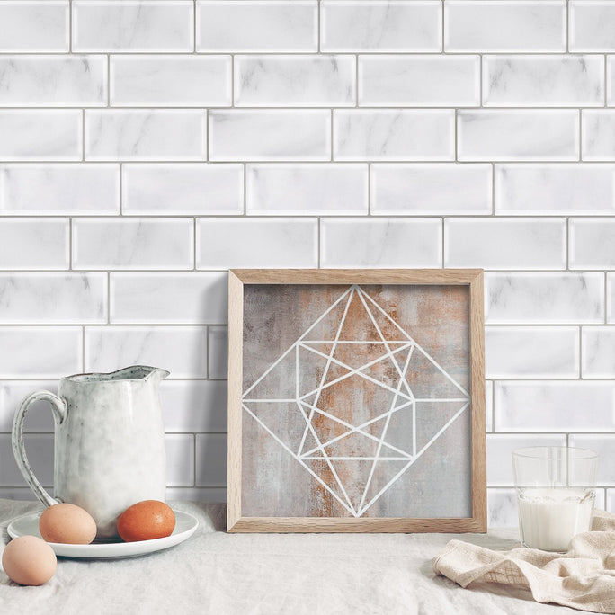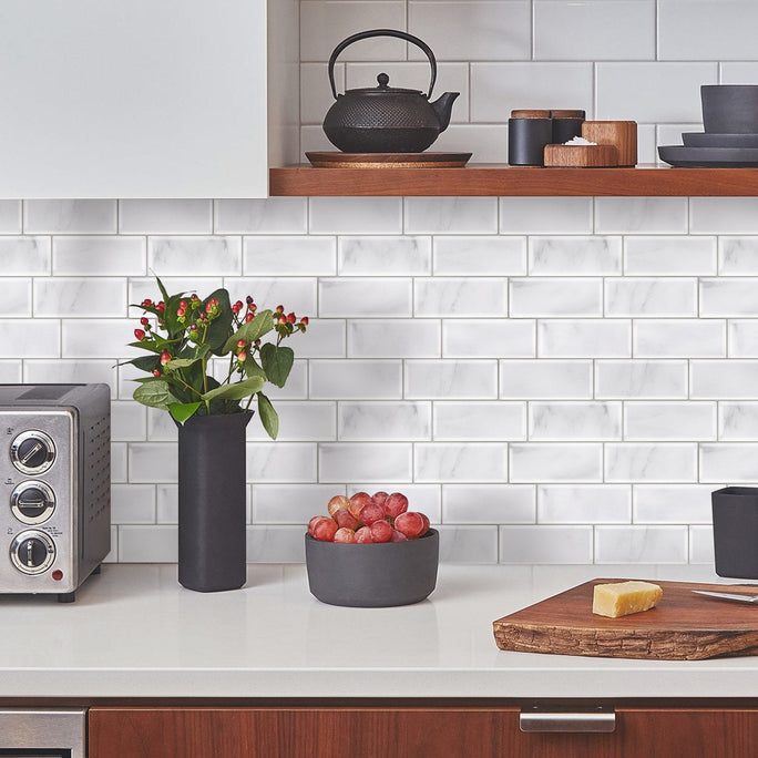 Step 3. Overlap the tiles and grout lines, peel off the backing, and stick them side by side for a seamless appearance.