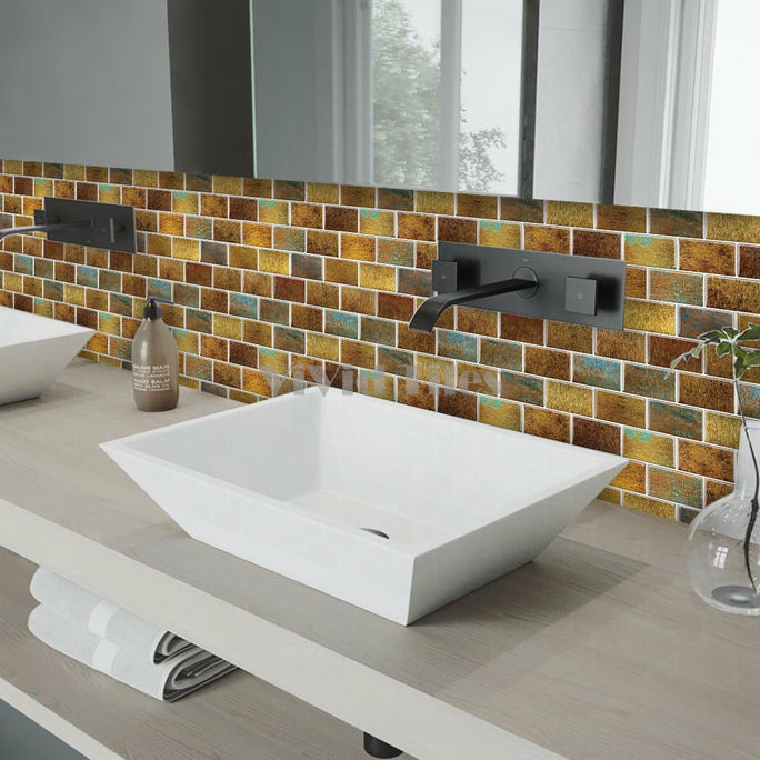 Step 3. Overlap the tiles and grout lines, peel off the backing, and stick them side by side for a seamless appearance.