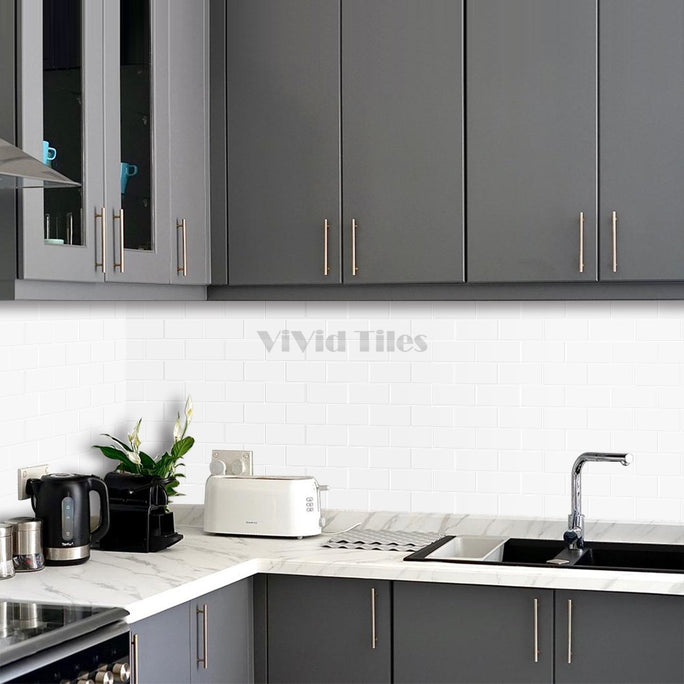 Thick 1.6mm 12.6*10.6 Inch Peel And Stick Pure White Brick Vinyl Wall Tile Home Decor Kitchen Bathroom Living Room VP216