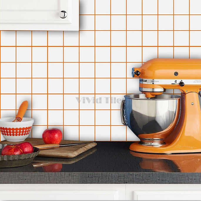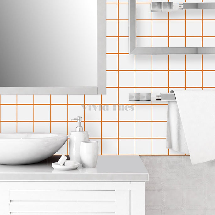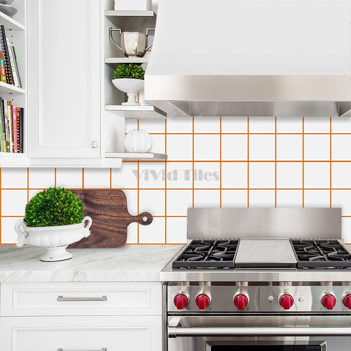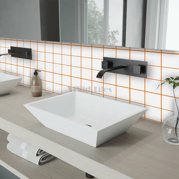 Thick 1.6mm Square Shape 12 X 12 Inch Peel And Stick White With Orange Grout Square Vinyl Wall Tile Home Decor Kitchen Bathroom Living Room VP500-C