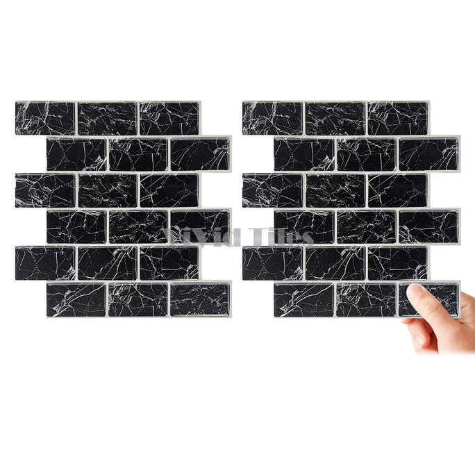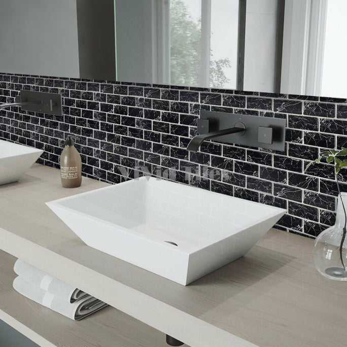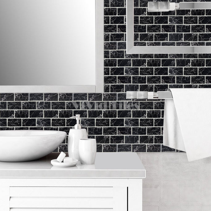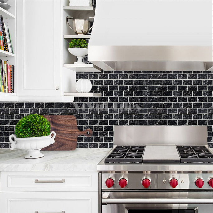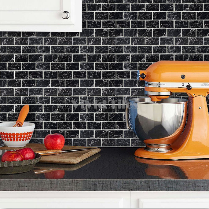 Step 3. Overlap the tiles and grout lines, peel off the backing, and stick them side by side for a seamless appearance.