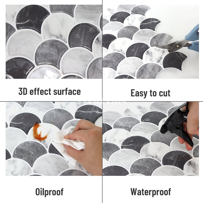 Step 3. Overlap the tiles and grout lines, peel off the backing, and stick them side by side for a seamless appearance.