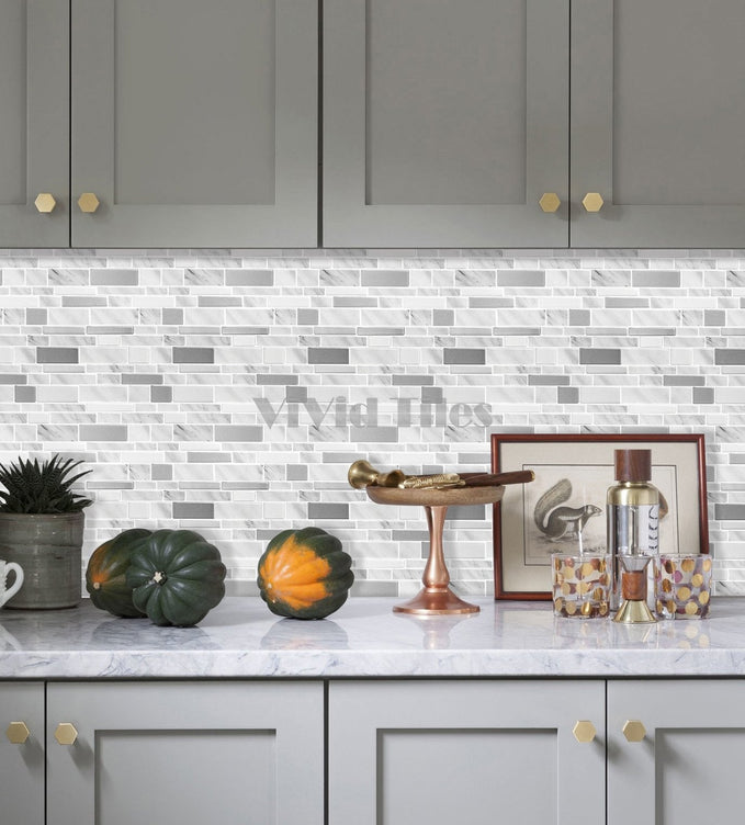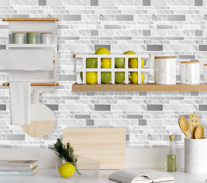 Step 3. Overlap the tiles and grout lines, peel off the backing, and stick them side by side for a seamless appearance.