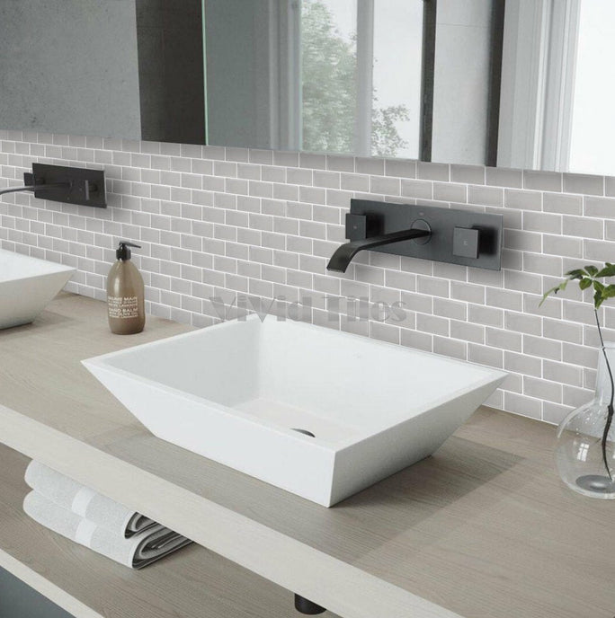 Step 3. Overlap the tiles and grout lines, peel off the backing, and stick them side by side for a seamless appearance.