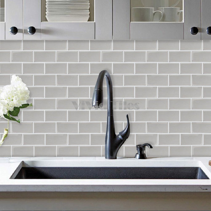 Step 3. Overlap the tiles and grout lines, peel off the backing, and stick them side by side for a seamless appearance.