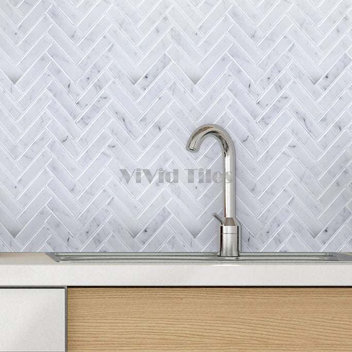 Step 3. Overlap the tiles and grout lines, peel off the backing, and stick them side by side for a seamless appearance.