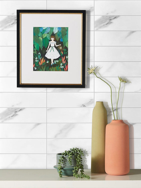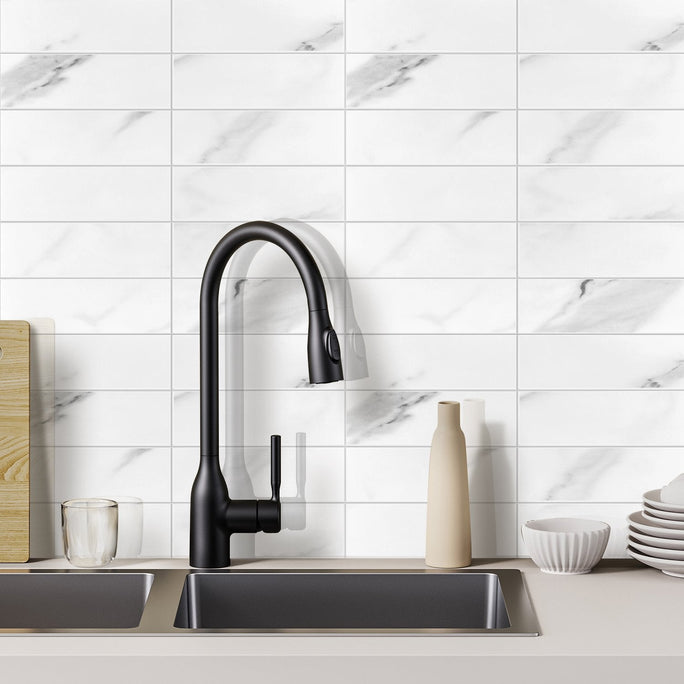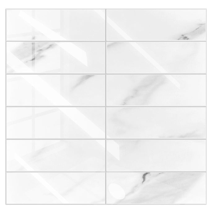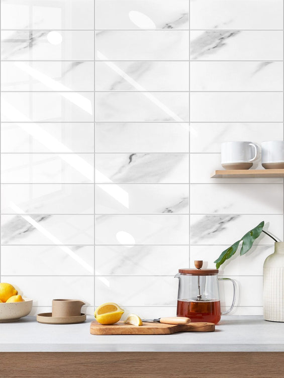 Step 3. Overlap the tiles and grout lines, peel off the backing, and stick them side by side for a seamless appearance.