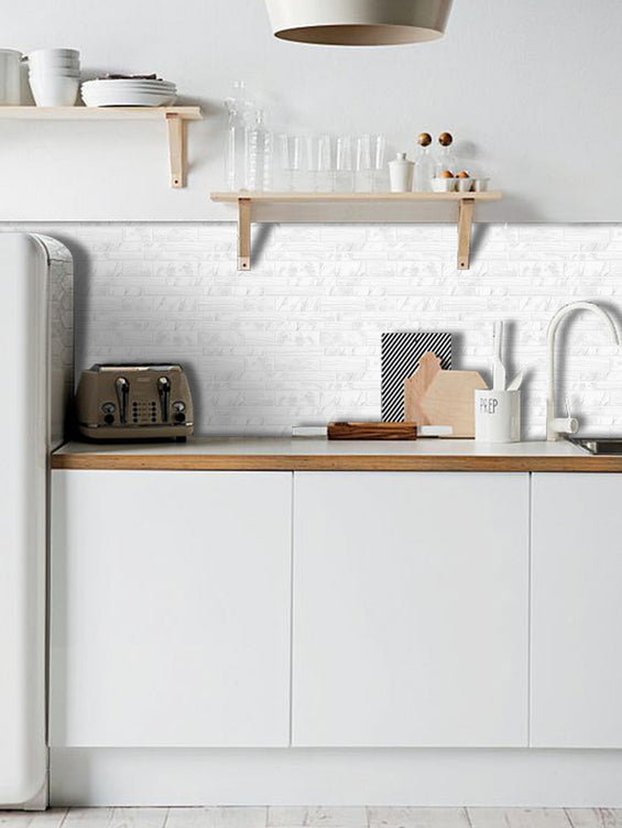 Step 3. Overlap the tiles and grout lines, peel off the backing, and stick them side by side for a seamless appearance.