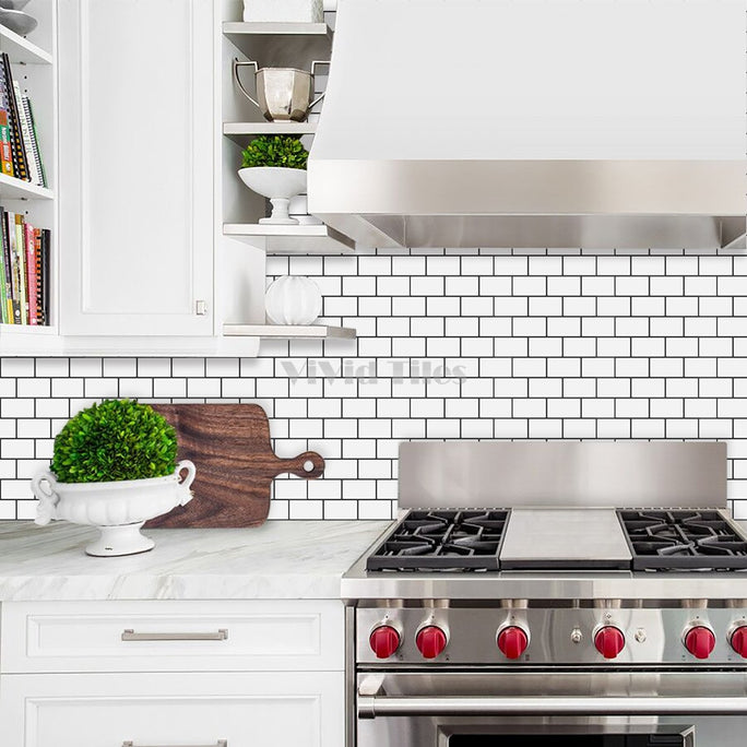 Step 3. Overlap the tiles and grout lines, peel off the backing, and stick them side by side for a seamless appearance.