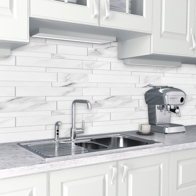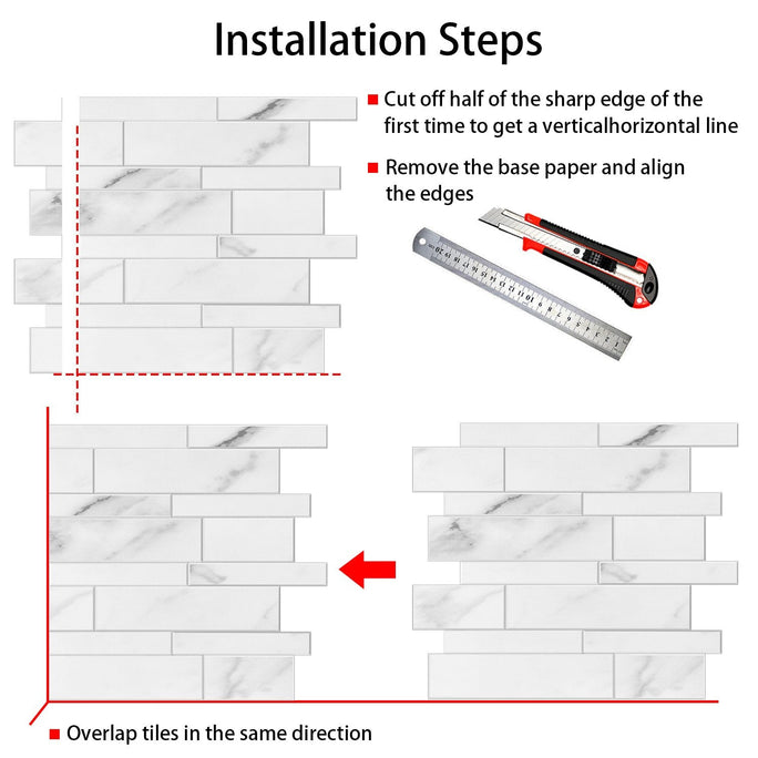 Step 3. Overlap the tiles and grout lines, peel off the backing, and stick them side by side for a seamless appearance.