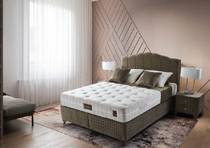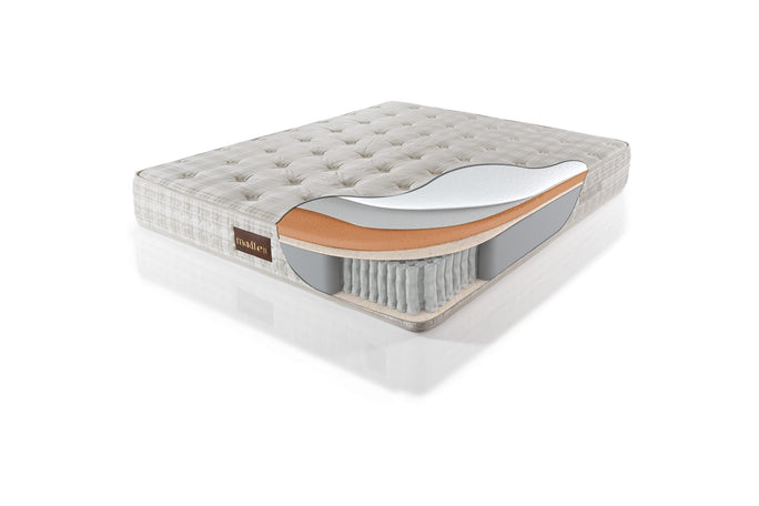 It has 5-zone pocket spring system comprised of arraying springs of different hardness provides special support for five