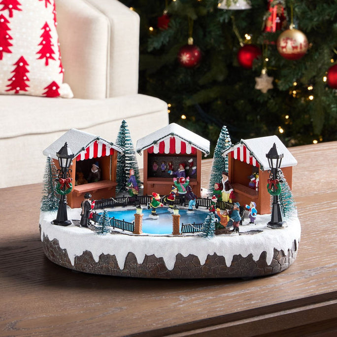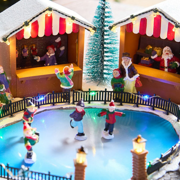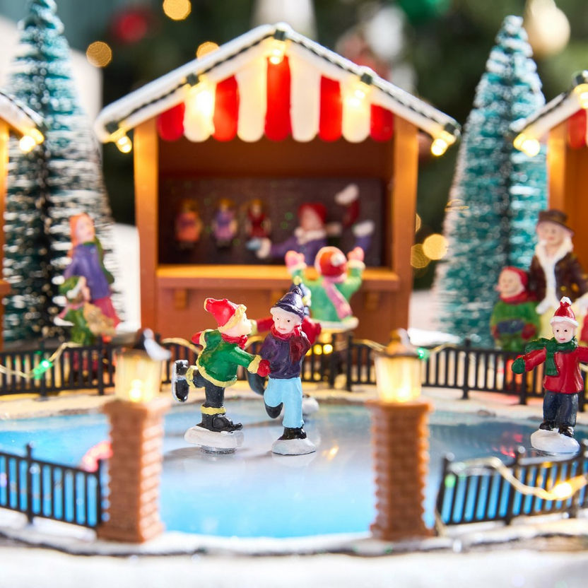 29 × 36 cm size; animated LED lights; detailed houses; plug-in power