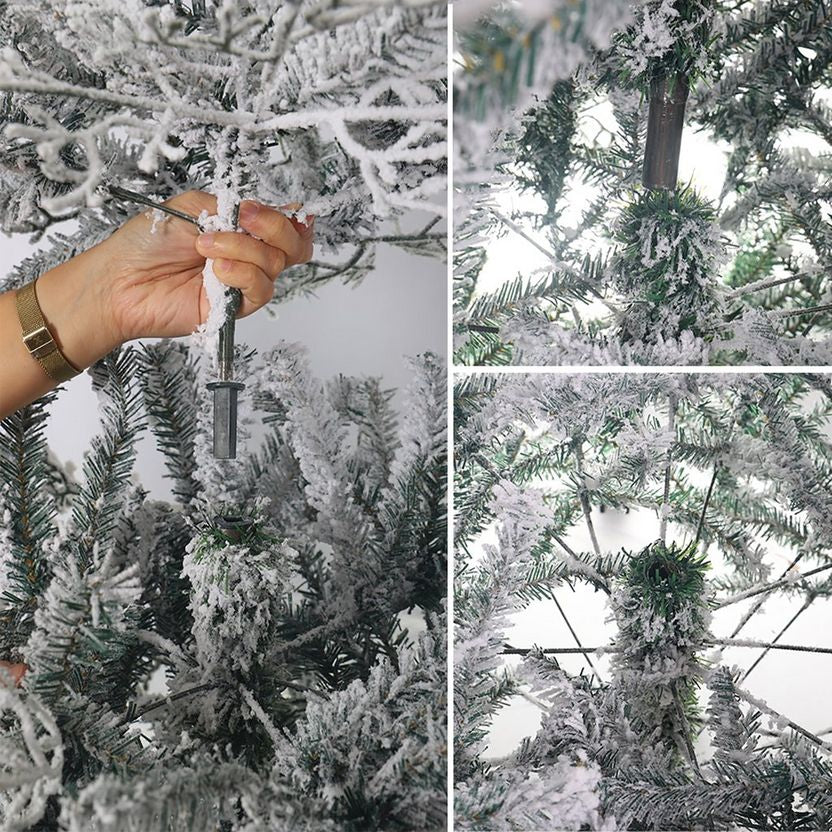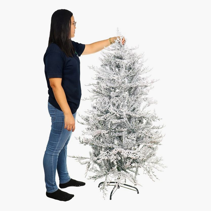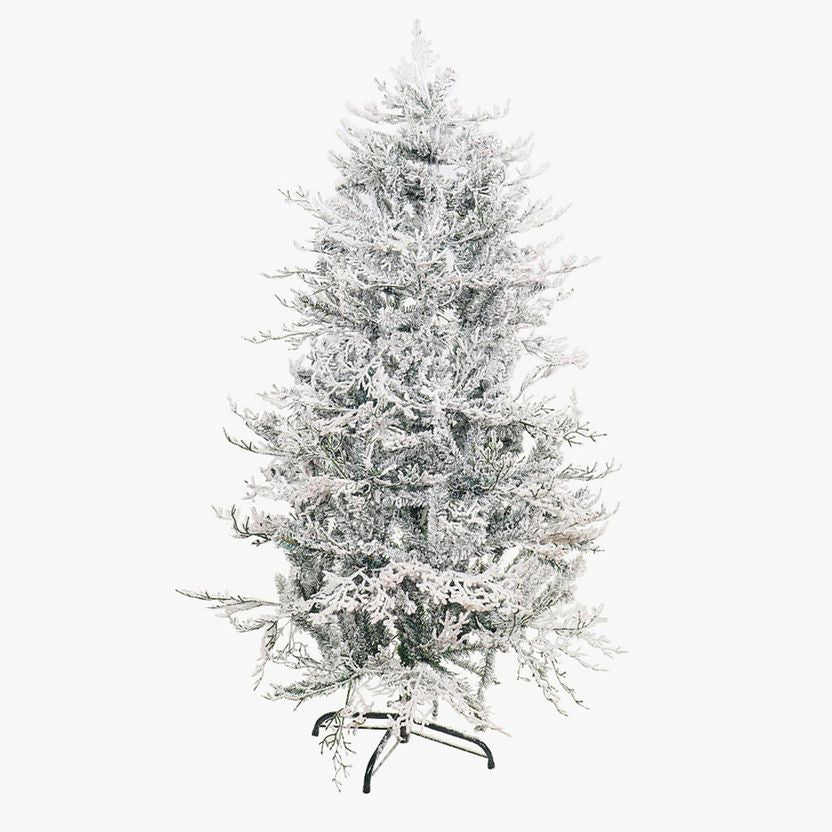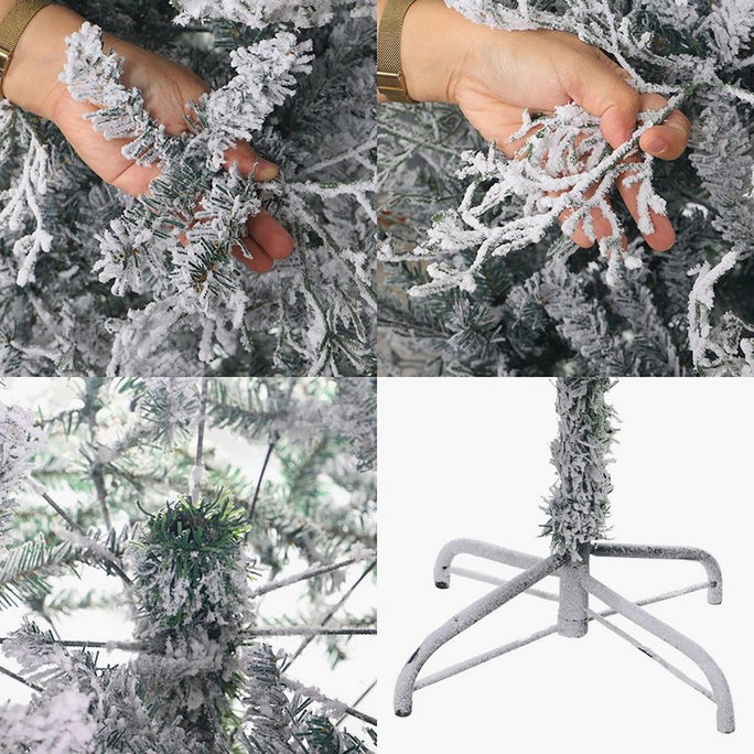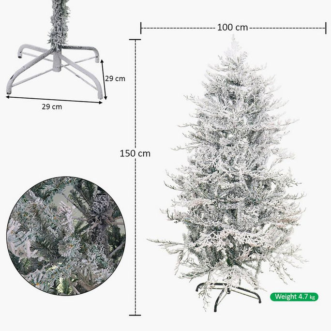 The Lifelike Snow-Flocked Christmas Tree — 150 cm offers authentic snowy charm in a compact form. Its soft flocking brightens interiors while keeping natural definition, making ornaments stand out beautifully. The sturdy stand keeps it secure on any surface, while the scaled size fits apartments, bedrooms, or hallways perfectly. Each branch holds decorations neatly, maintaining fullness without crowding. Style with silver and white baubles for a contemporary winter look. Usage idea: elevate on a console or stool to give added height and create a layered visual display.
