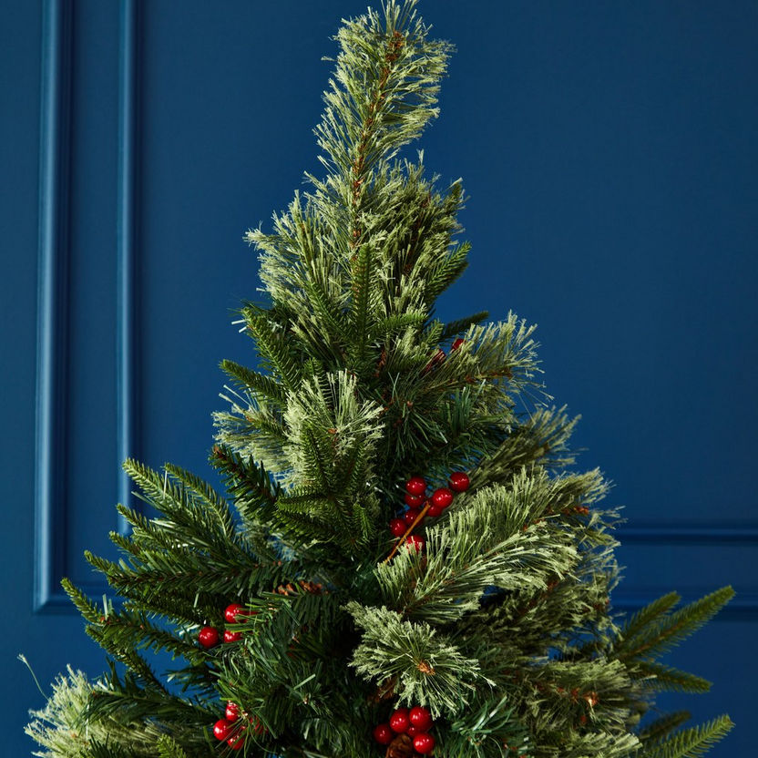 The Luxury Christmas Tree with Cones & Berries — 6 ft brings seasonal warmth with a full, well-balanced silhouette that’s easy to dress. Lifelike cones and berries provide ready-made woodland detail, so you can achieve a curated look with fewer ornaments. Supportive branches hold baubles, ribbon and string lights securely while keeping a composed outline. The scale is considered for easy placement, offering presence without overwhelming your room. Style with mixed metallics for a luxe mood or pair with classic reds and tartans for a cosy, traditional scheme. Usage idea: nestle warm-white lights deeper on the inner boughs, then add a softer outer layer for depth and dimension.