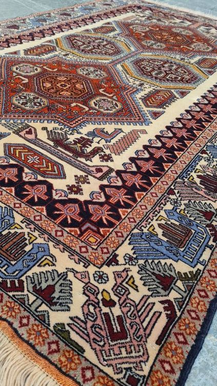 Handmade carpet (old) in like new condition, Baluch Kalat, 2 bergamot pattern, rug size 2.08×1.4, cream background color, cream border color. Expertly handmade in afghanistan, it brings authentic character and timeless style to your space. From Handmade, known for artisan craftsmanship and quality finishes that age beautifully. A statement piece that anchors living rooms, lounges, and reception spaces with warmth and texture. Fast regional delivery — UAE 5-7 days • GCC 5-7 days • Africa 7-10 days.