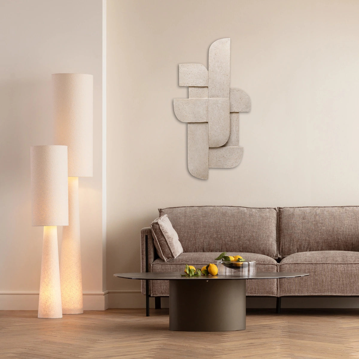 The Rotondo Pezzi Extra-Large Wall Object offers a sculptural interpretation of circular form, creating a striking focal piece for refined modern interiors. Crafted with a textured finish in warm beige tones, it introduces dimensional depth and artistic rhythm to large walls. The oversized scale makes it ideal for living rooms, entrance halls and open-plan spaces where a statement piece is needed without overwhelming the décor. Its soft curvature and layered detailing blend effortlessly with neutral, minimalist and contemporary styling. Whether used alone or paired with complementary wall objects, it enhances visual interest through shadow play and form. A perfect choice for homes seeking refined artistic expression with quiet elegance.