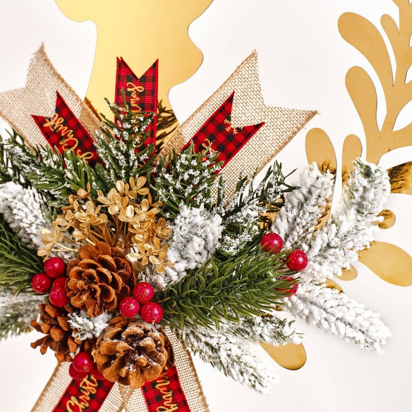 The Elegant Handcrafted Christmas Wreath radiates refinement through carefully layered greenery and metallic touches. Each piece is handmade with attention to balance and proportion, ensuring a full, luxurious shape. The neutral metallic palette works beautifully with both traditional and modern spaces. Its sturdy backing makes it easy to hang indoors or in sheltered outdoor areas. Usage idea: style two identical wreaths side by side on double doors for a sophisticated entrance.