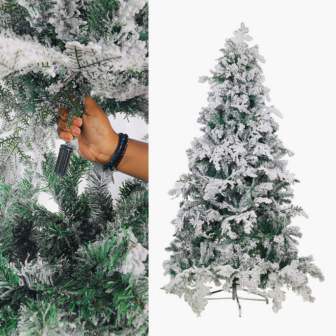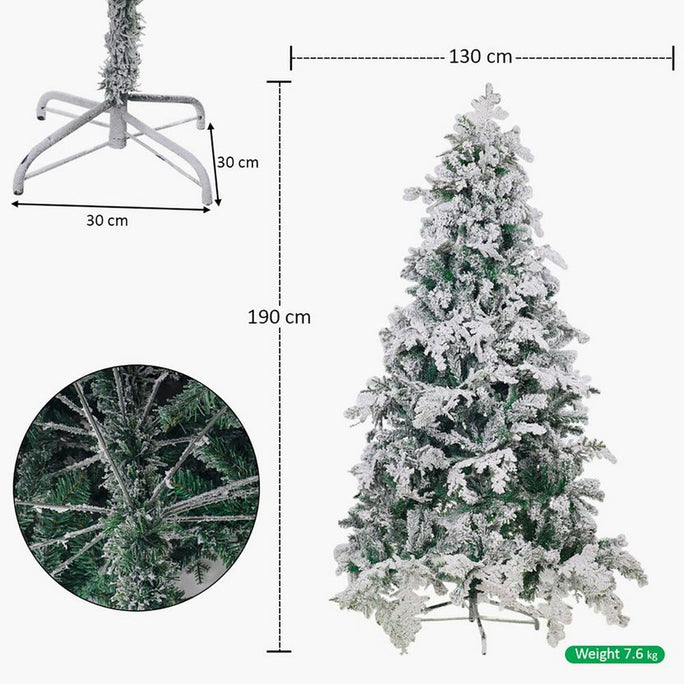 The Snow-Flocked Christmas Tree — 190 cm brings serene winter charm with its soft, snowy branches and full silhouette. The flocked texture reflects light beautifully, creating a calm, luminous effect in any living space. Sturdy metal stand ensures long-lasting stability while the dense branches hold ornaments securely without sagging. At 190 cm, it offers a generous yet manageable height, perfect for compact homes or secondary displays. Style with champagne tones and white ornaments for understated luxury. Usage idea: position near a window to allow natural light to highlight the frosted detailing.