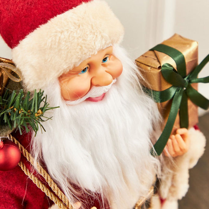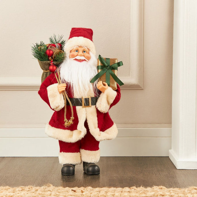 The Standing Santa Decorative Figurine captures classic Christmas style with hand-painted detailing and vibrant colour. Its sturdy construction ensures lasting stability on shelves or floor displays. The jovial pose and polished finish make it a joyful focal point in living rooms or lobbies. Usage idea: combine with small gift boxes and LED string lights to create a mini scene of Santa at work.