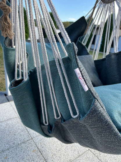 Carefully cut and sewn, it offers comfort even to the tallest user, with a large load capacity. The hammock armchair is reversible, it can be used on both sides.