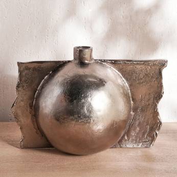Davy Handcrafted Metal Round Vase (40×24×27 cm, Antique Nickel)