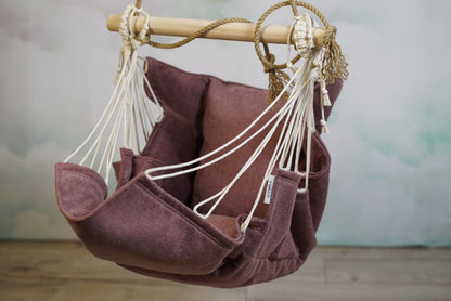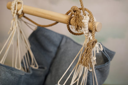 Suspended armchairHardwood beamRope with metal rod br