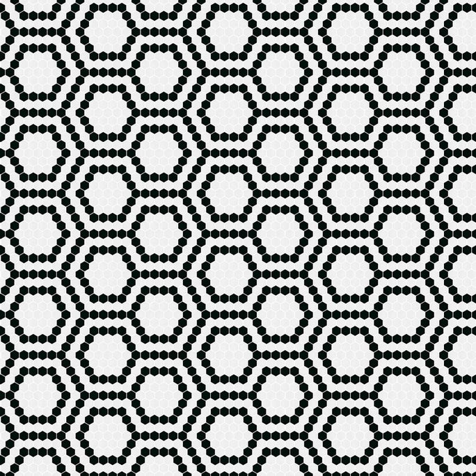 Hexagonal mosaics can be laid on the floor or vertically on interior and exterior surfaces. Tiles can be used in contact with water for applications such as shower trays or swimming pools. Due to the size of the tesserae and the frequency of joints, the mosaic surface is inherently slip-resistant. The waterproof characteristics of this mosaic does not preclude waterproofing of the foundation substrate for swimming pools and similar applications.