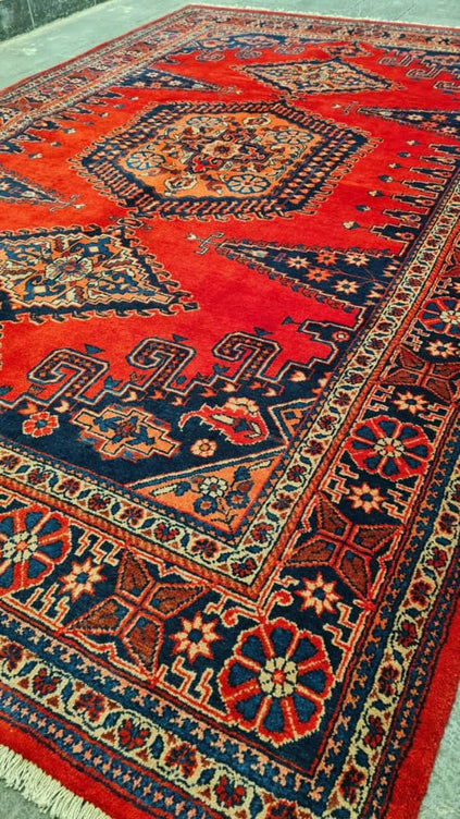 Handmade Weiss carpet, Lacquer and Bergamot design, carpet size 3.27×2.18, lacquer background color, navy blue border. Expertly handmade in Iran, it brings authentic character and timeless style to your space. From Handmade, known for artisan craftsmanship and quality finishes that age beautifully. A statement piece that anchors living rooms, lounges, and reception spaces with warmth and texture. Fast regional delivery — UAE 5-7 days • GCC 5-7 days • Africa 7-10 days.
