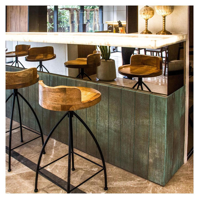 Achieve a vintage aesthetic for your bar units with liquid metal finished ready-to-install panels.